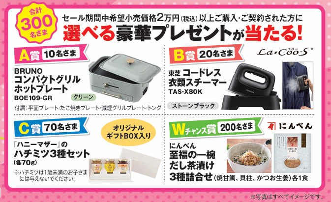 対象: セール期間中、希望小売価格2万円(税込) 以上ご購入・ご契約されたお客さま。